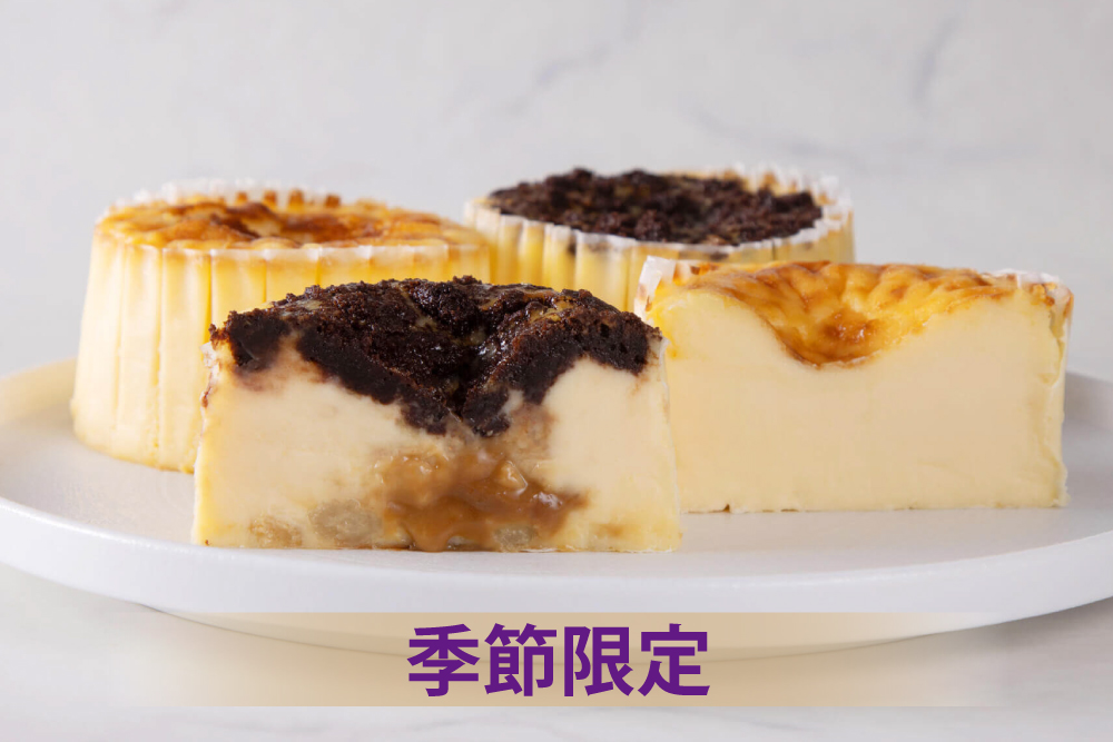 定番バスクチーズケーキとゴールデンラムレーズンバスクチーズケーキの2種類がお楽しみいただけるセットです。